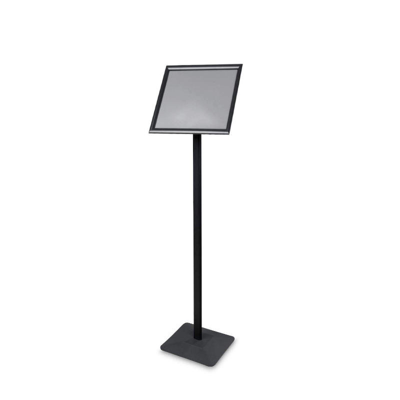 Много елегантен информационен щанд, чиято основа е изработена от стомана. Благодарение на това е много стабилен и е идеален за външна употреба. Щандът е предназначен, наред с други неща, за меню на ресторант, упътвания, представяне на информационни табла и др. Плакатът се заменя с рамка за закрепване.